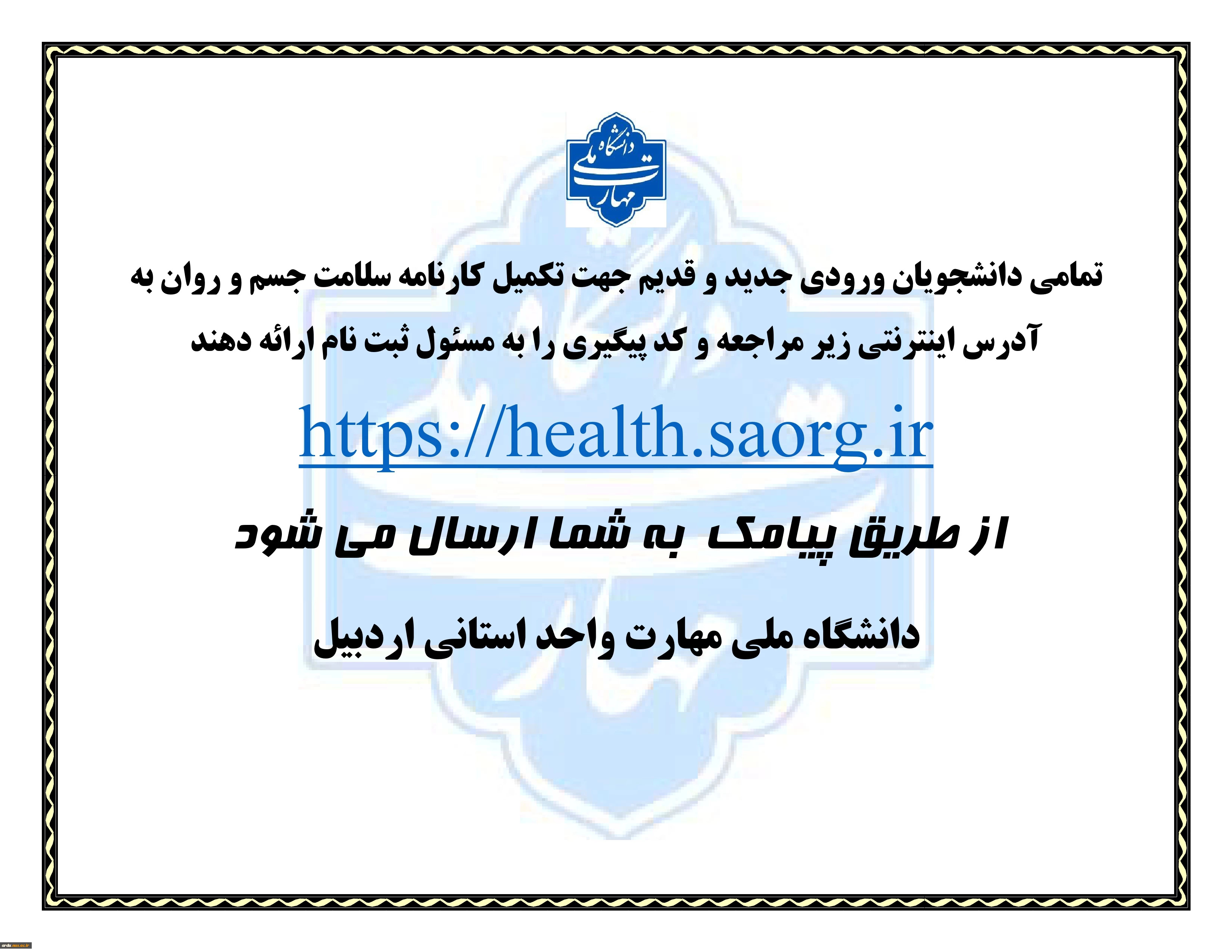 امتیاز دهید : اطلاعیه ثبت نام پذیرفته شدگان کاردانی ویژه دانشگاه ملی مهارت-سال ۱۴۰۴ 4 دوشنبه 14 مهر 1404 ساعت 13:45
